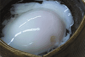 私が真空調理に取り組むヒントになったのは実は温泉たまごなんです。 温泉たまごは、ある一定の温度例えば65℃や68℃で加熱すると、決して固ゆでたまごにはならないという原理からつくることができるわけです。そうすると、たまごと親子関係にあるニワトリも温泉たまごと同じ温度で加熱したら食べられるんじゃないかと考えたのが私の真空調理の原点です。 |